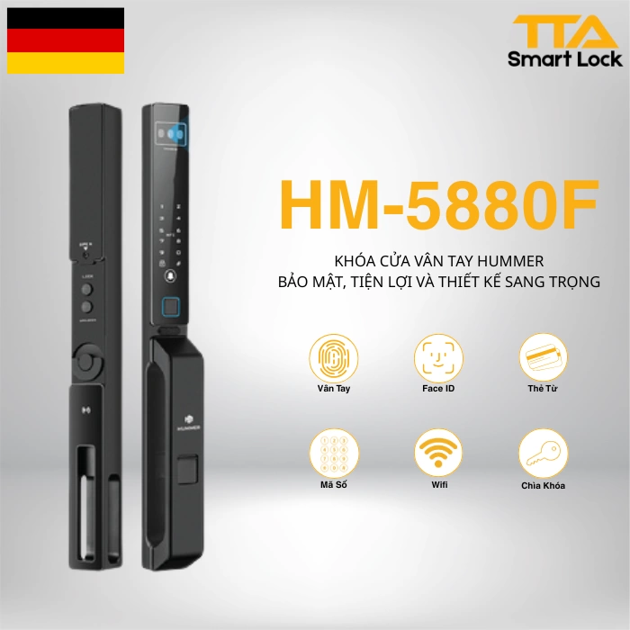 Khóa vân tay cửa nhôm HUMMER HM-5880F Face ID