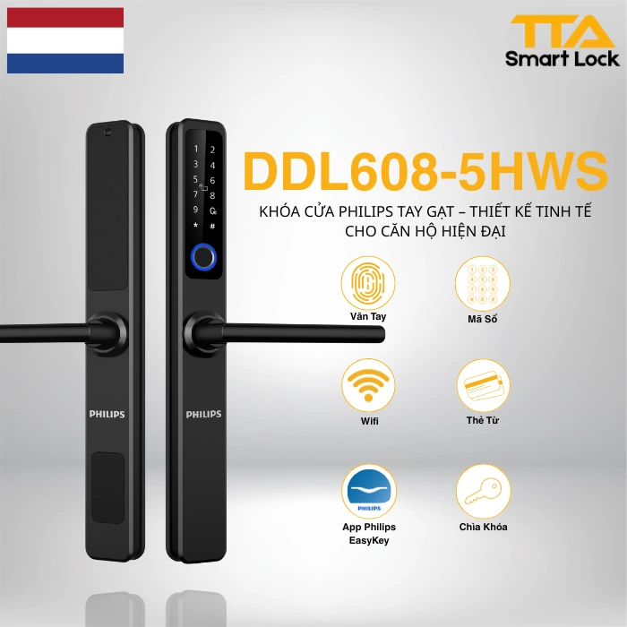 Khóa vân tay cửa nhôm Philips DDL608-5HWS